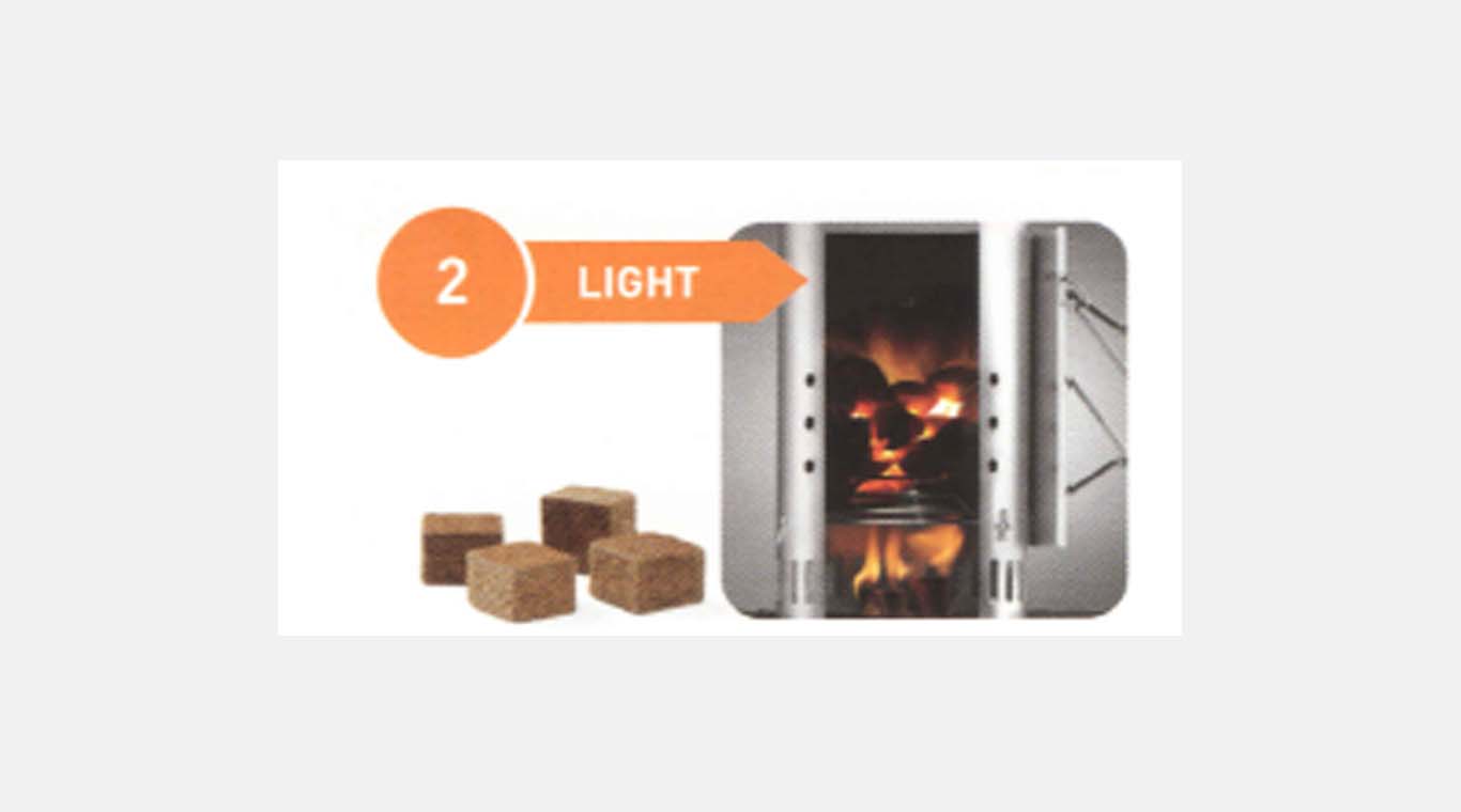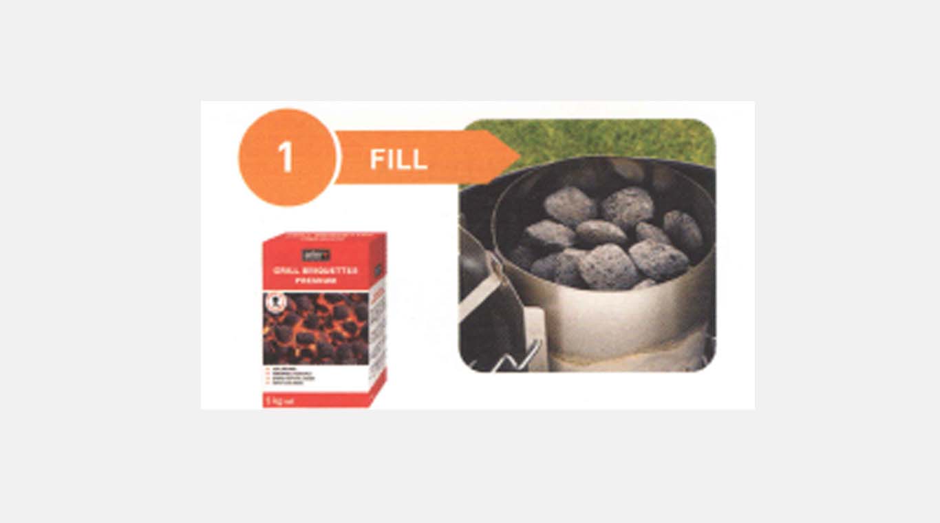 Place 2 Weber lighter blocks on the bottom grate of the charcoal grill, light them and place the Rapidfire Chimney Starter over them.