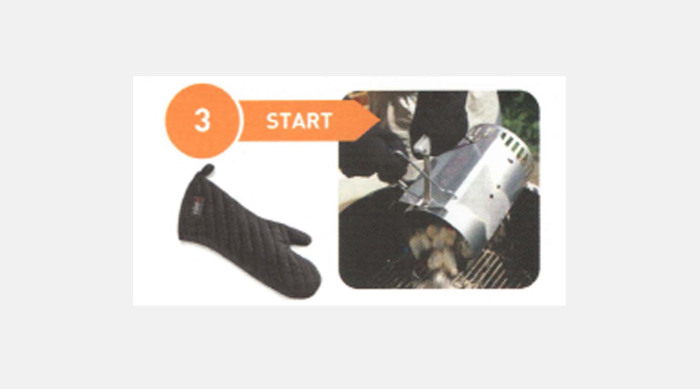 The Rapidfire Chimney Starter delivery hot coal within 20 minutes. Use a mitt to pour the charcoal on the grate and start grilling!