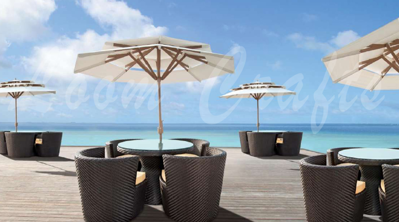 In particular it’s the variety of different-shape & -size models from the self-reliant Loom Crafts ’Jumbo’ production line that is considered worldwide as the most finished and exacting outdoor sheltering culture by market insiders. What are the reasons? – The quite simple answer is: Ever since, Loom Crafts structures have been the most solid, most elegant, and the most long lived ultra-sized ”anti-wind” parasols that one can buy for money. They are proudly being ”Made in India”, now as ever.